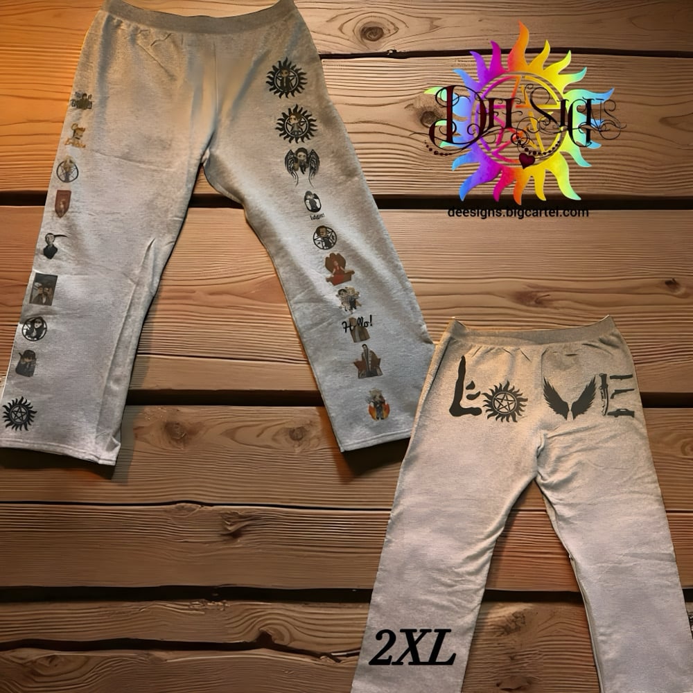 Super comfy XXL sweats. Includes many of the spn characters!