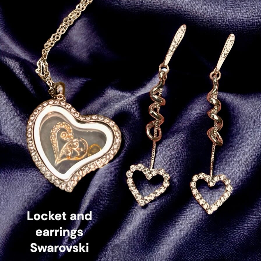Swarovski heart (locket) necklace and earring set