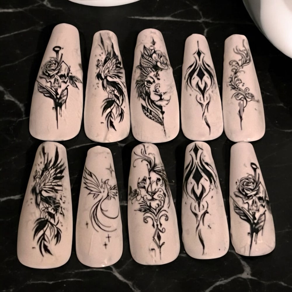 fully cured, gel nails. set of 10 reuseable nails. comes with a box, nail glue and nail file. matte finish